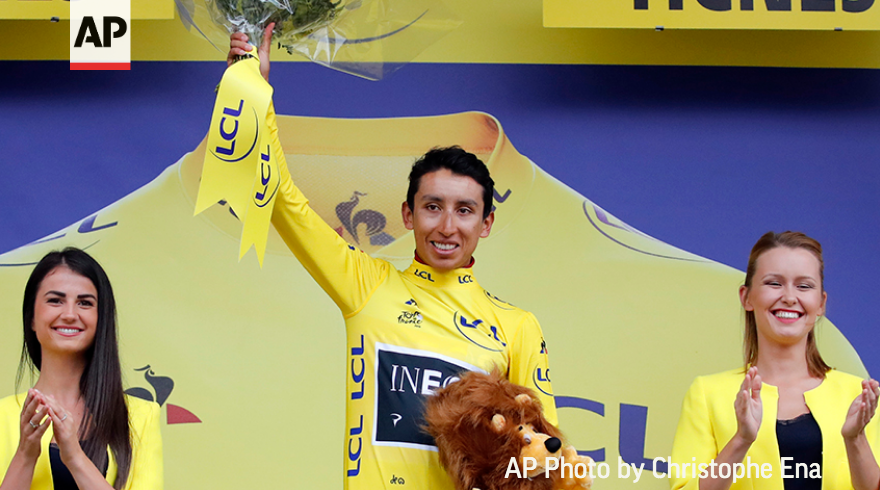 Look who's wearing yellow. #tourdefrance2019 new leader is #Colombia's Egan Bernal. Woohoo so thrilled for him. #rideyourbikepic.twitter.com/EfcKuJZH2o