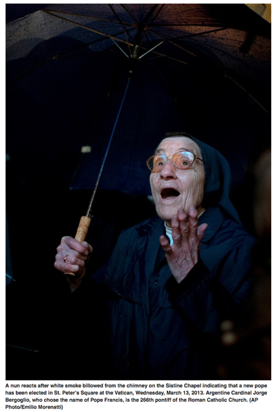 Absolutely charming is this photo by @morenatti2004 of a nun's reaction to the sight of billowing white smokepic.twitter.com/gy1VeU0CPc