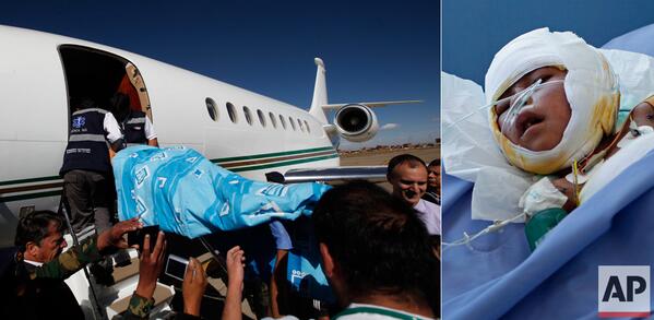 Badly mauled by dog, Bolivian Rosalia arrived safely in Boston, for reconstructive surgery. pics' by AP's Juan Karitapic.twitter.com/oXpmSVnlJa