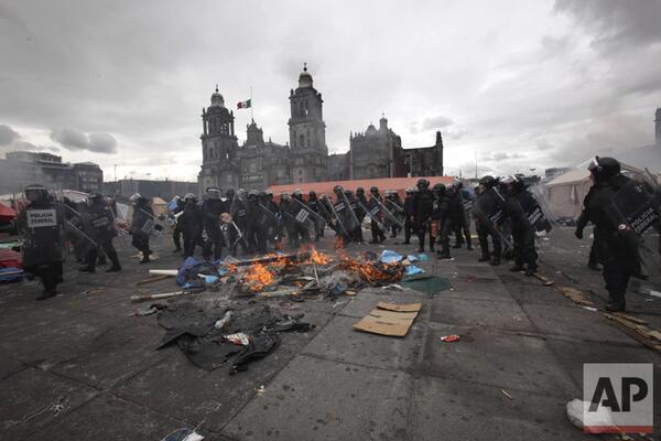 Well that was swift. Riot police end teacher occupation of Zocalo. But where did they go? http://bigstory.ap.org/article/teachers-seize-historic-heart-mexico-city …pic.twitter.com/xEanxzjQle