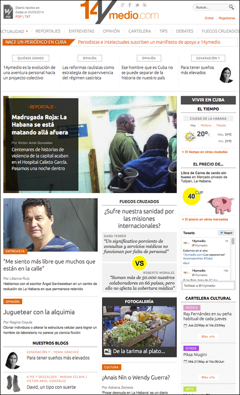Primer diario digital en Cuba se lanzo hoy http://www.14ymedio.com/  lástima que los Cubanos no pueden verlo #hackedpic.twitter.com/sIH9Mzh1U7