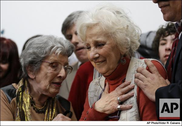 Good news for Estela Carlotto, locates grandson taken by military during Argentina's Dirty War http://bigstory.ap.org/article/argentina-activist-finds-kin-taken-dirty-war …pic.twitter.com/K2D8XNs7hs