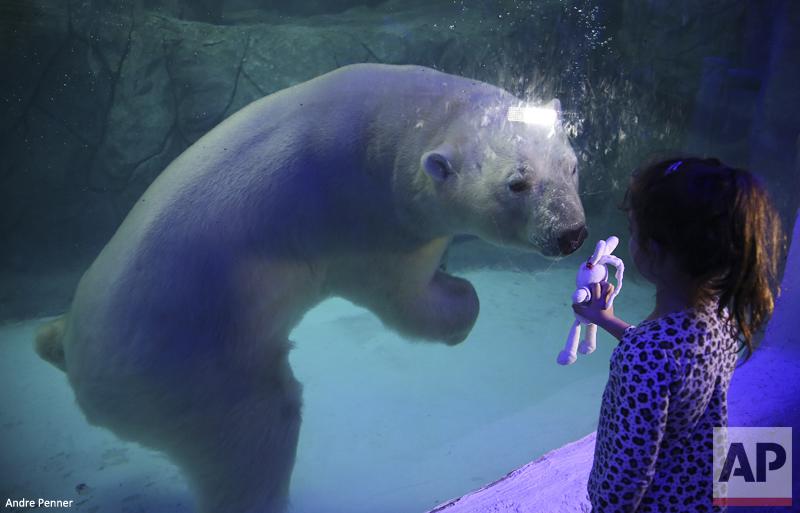 A girl, her toy bunny, and a bear. Heart melting. Russian bears make debut at Sao Paulo Aquarium. #TheSweetestEverpic.twitter.com/7rM3FPxl9t