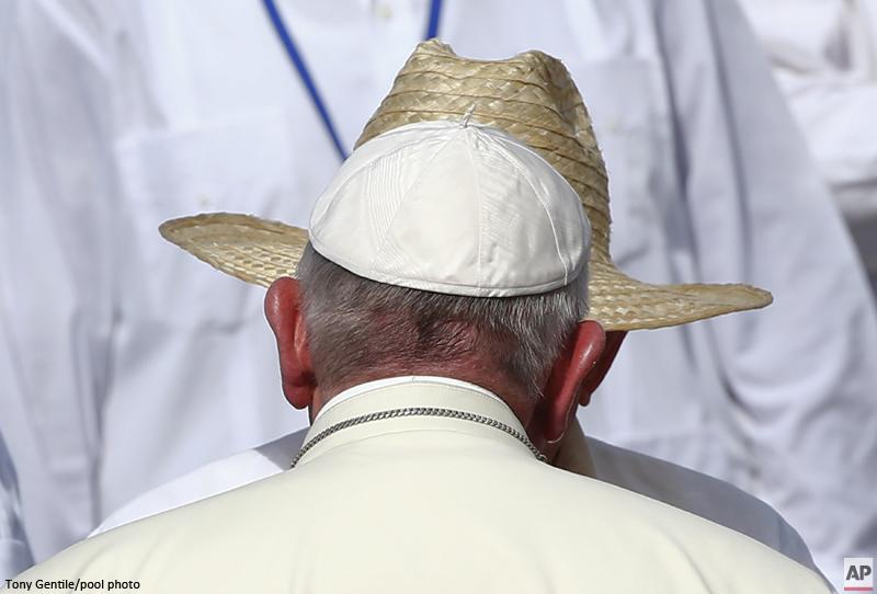Heads-up. Nice shot by pool photographer Tony Gentile, #PopeFrancis and #RaulCastro greet in #Holguinpic.twitter.com/J7jzt4HKye