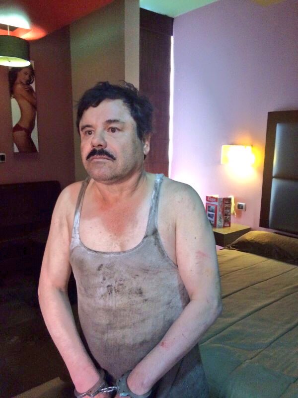 Foto de El Chapo ya esposado después de ser capturado en Los Mochis. Es otra foto. #ElChapoCapturado #México