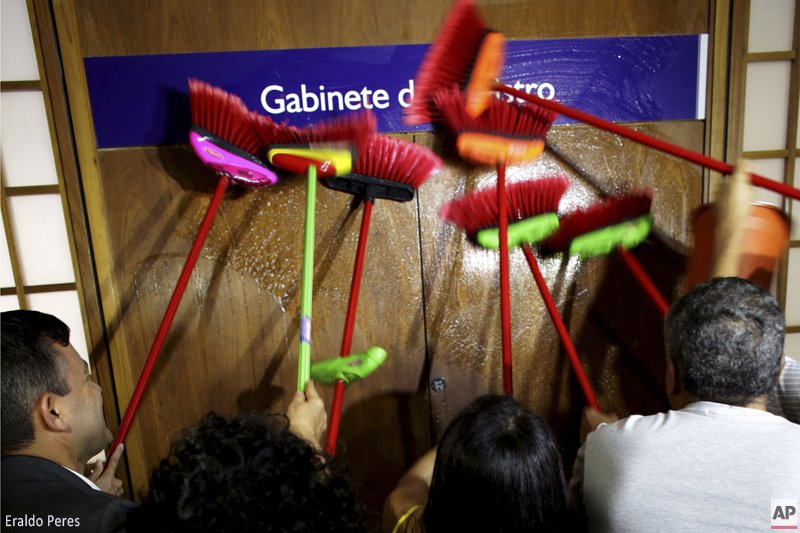 Staffers attack w/brooms door of Brazil's Transparency Minister asking for his resignation http://bigstory.ap.org/article/df87f065989f4f22a7271d8975240b54/recording-raises-questions-about-brazil-transparency-chief …pic.twitter.com/SSIDOY8ey8