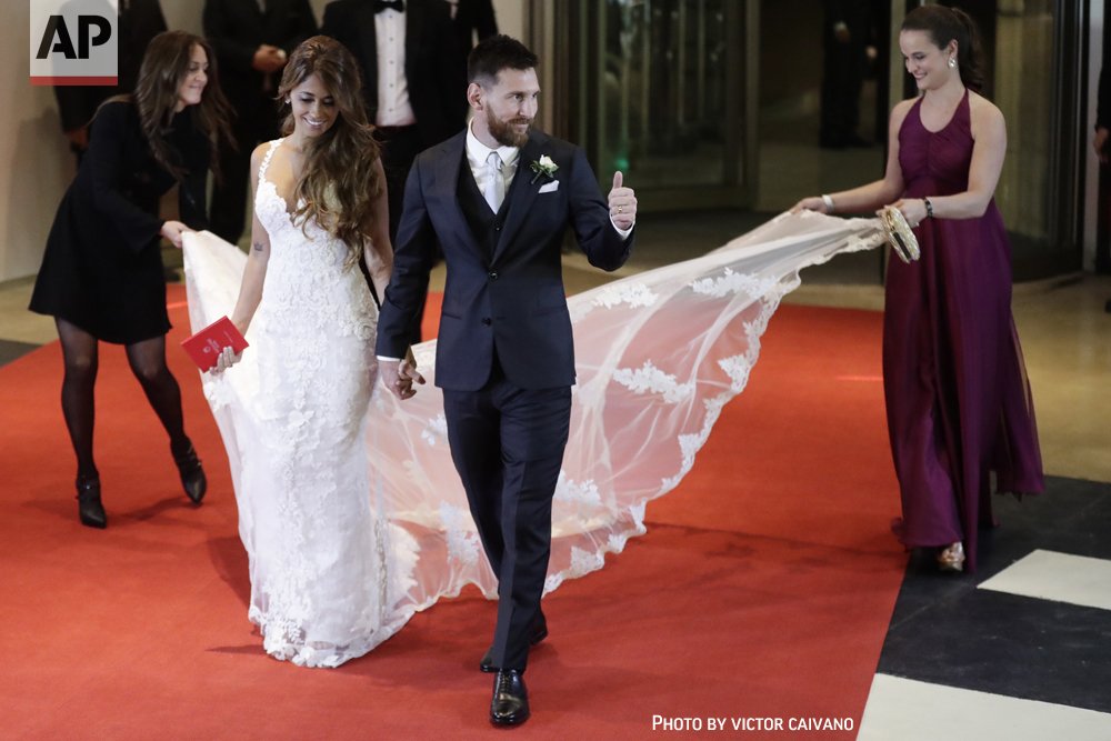 Newlyweds! #LionelMessi and #antonellaRoccuzzo #LaBodaDeMessipic.twitter.com/3J0c9Pf0cC