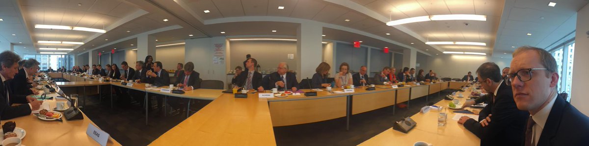 Joint meeting of EU Ambassadors w. COPS/PSC Ambassadors from Brussels at @EUatUN on current UN issues.pic.twitter.com/xH9maiUfc5