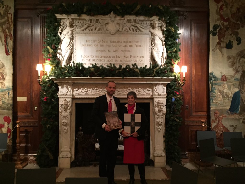 Amb. Mažeiks presents rare copy of Terra Mariana facsimile & collection of 70 Latvian films 2 K.McDonough of @nyplpic.twitter.com/FvdqoPby9l
