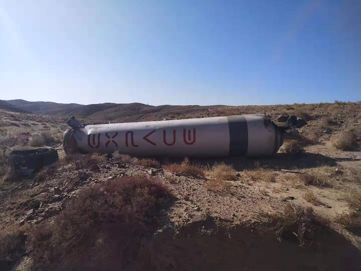 Spent first and second stages of KZ-1A that carried KL-α-A & KL-α-B satellites to orbit. Posted by ExPace on weibo to show that they drop stages to inhabited areas.