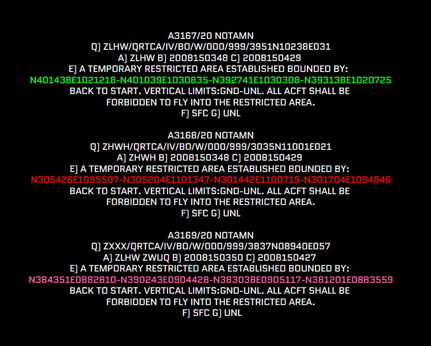 Hmmm... 3 notams all active between the same time frame. Pink and green look to be missile testing related but the red one is same area as CZ-2C carrying HY-1D from june 10th. Hmmmmm.....pic.twitter.com/1VrO8lmlQg