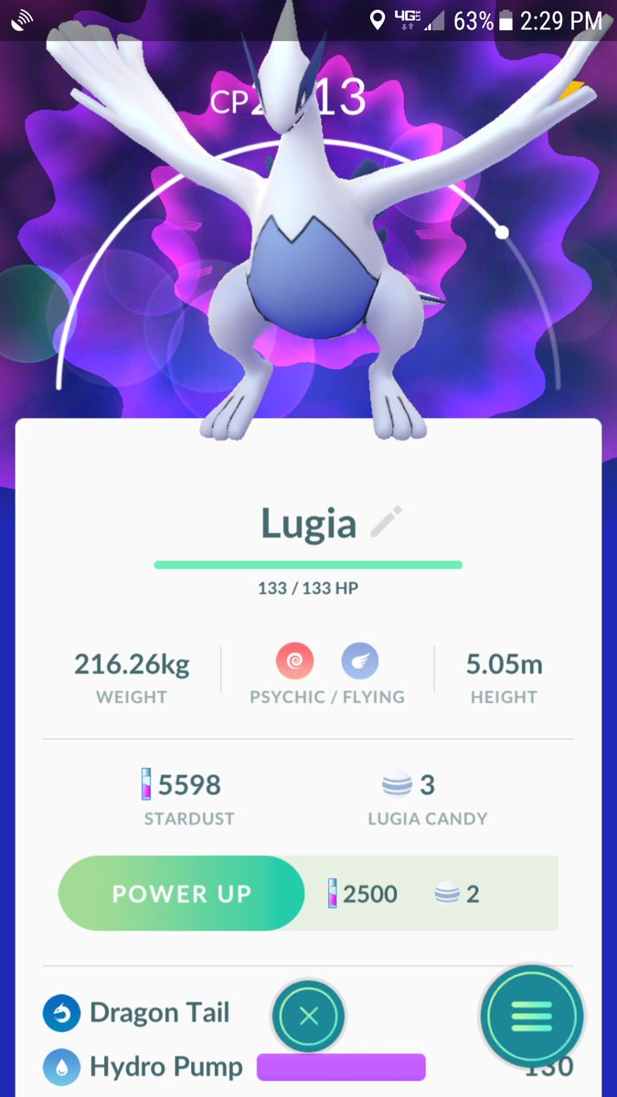 And I never even encountered a Lugia yet, and I just caught Articuno today.