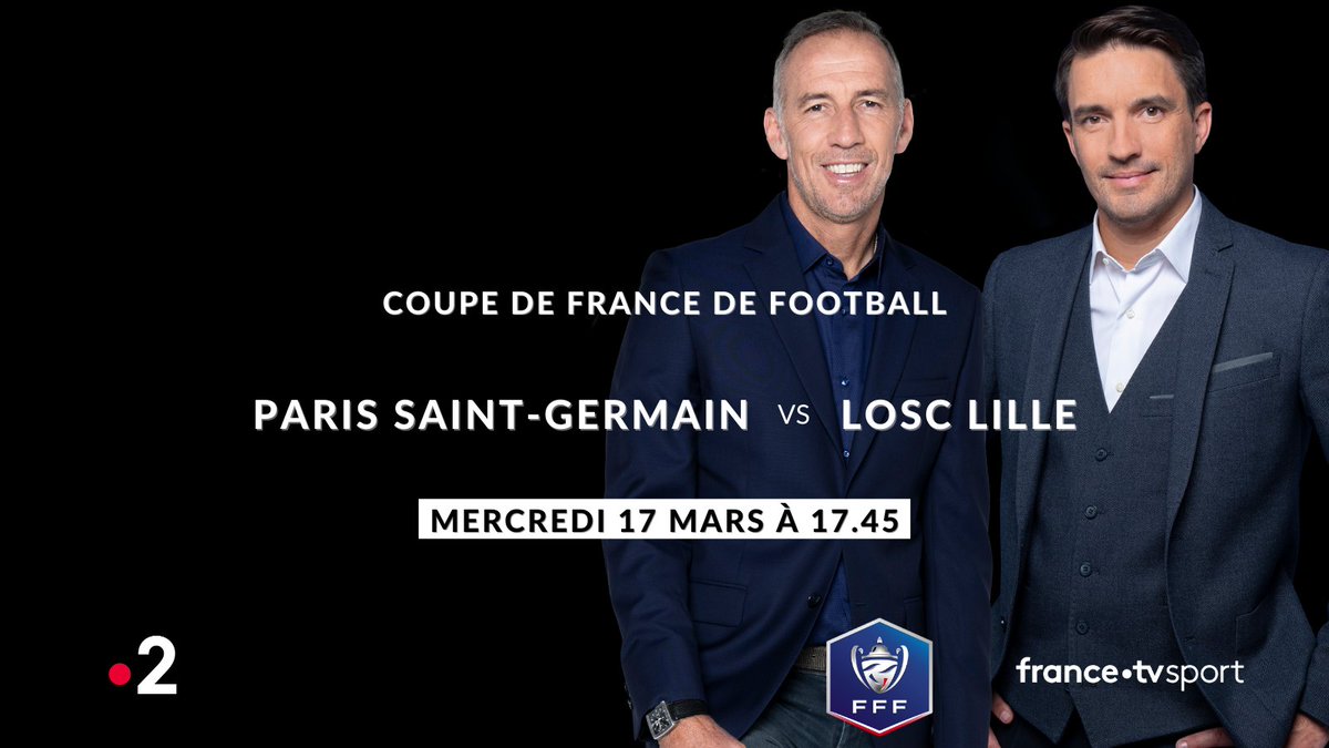 Rendez-vous mercredi 17 mars à 17.45 sur @France2tv pour vivre en direct le 1/8e de finale de Coupe de France#PSGLOSC Communiqué