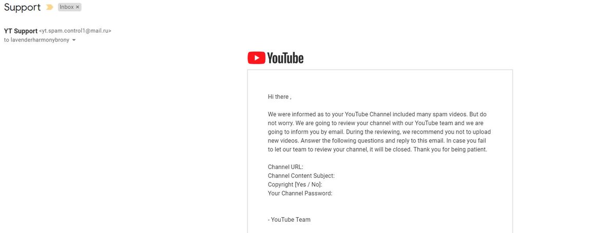 @TeamYouTube Just got a really cute email. Don't worry, I know this isn't legit, but just letting you guys know this is a thing lol.pic.twitter.com/ADoQhargP2
