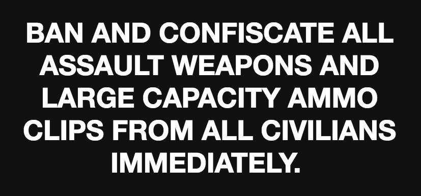 @realdonald_trump Issue Exec Order Now! Ban + Confiscate All Assault Weapons, Lethality Enhancing Modifications + High Capacity Ammo Clipspic.twitter.com/2Fvzee7zC2