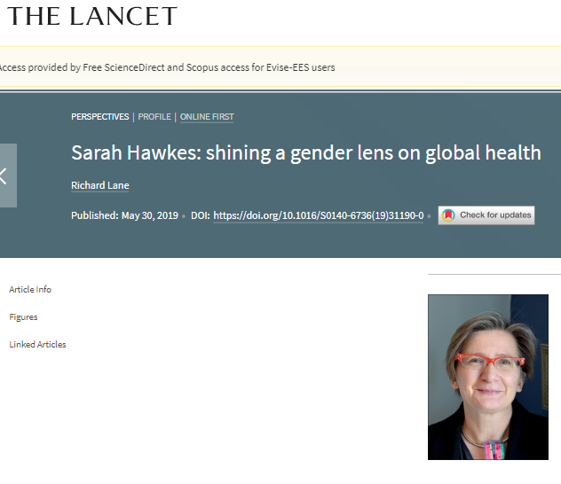 Sarah Hawkes @feminineupheave profiled @TheLancet. I love the way she thinks w/ sharp clarity, following the evidence where it leads. And her scholarship & advocacy for gender health & justice is simply transformative. She is a global health leader extraordinaire.https://twitter.com/kentbuse/status/1134359096814120960 …