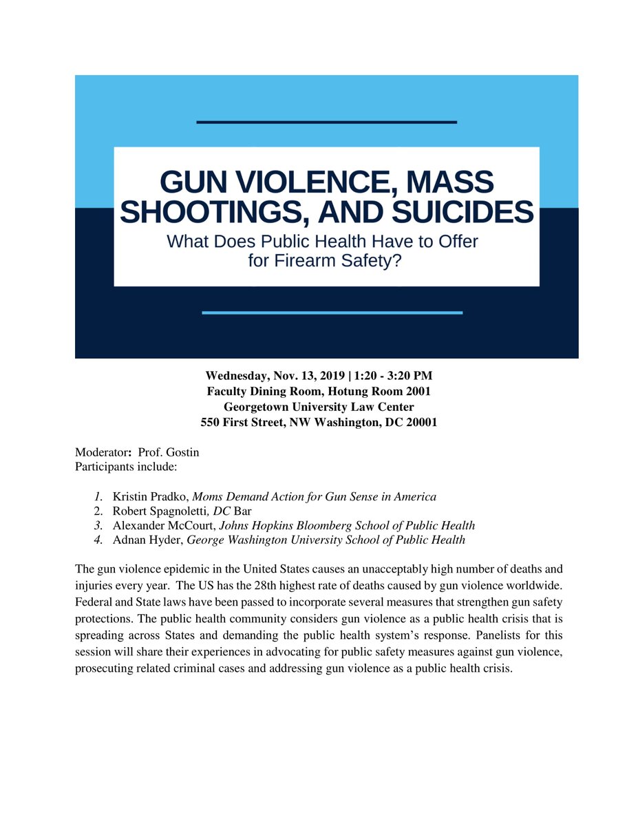 Tomorrow 1:20pm @oneillinstitute @GeorgetownLaw on PH strategies on gun violence, mass shootings, suicides. Recall White House promise after last summer's mass killings to support gun safety laws? Nothing happened! We have good evidence on #firearms violence. We simply don't act.pic.twitter.com/45mBKLCqu4