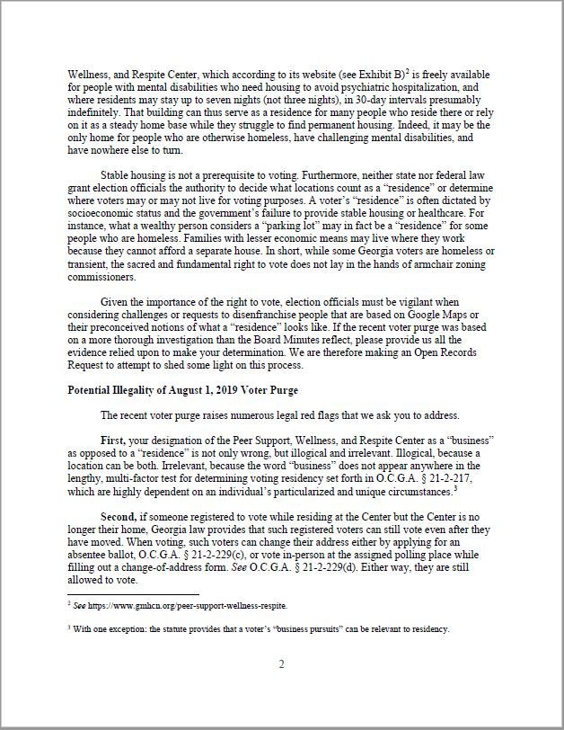 📌BREAKING: We partnered with the @ACLUofGA to send a letter to members of the DeKalb County Board of Elections demanding answers regarding the immediate purging of voters at the Peer Support, Wellness, and Respite Center in the City of Decatur, #Georgia. #votersuppressionpic.twitter.com/mX0u4BhmmK