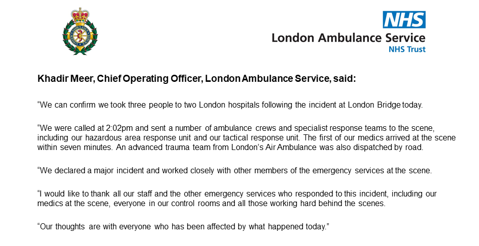 Make sure those that were on the scene at the front line are supported and congratulated in their bravery. Hats off to all of the emergency services today!