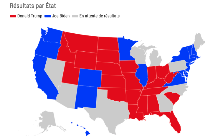 Trump ou Biden ? Suivez la course à la présidentielle américaine et les résultats État par État mis à jour en direct sur notre carte interactive