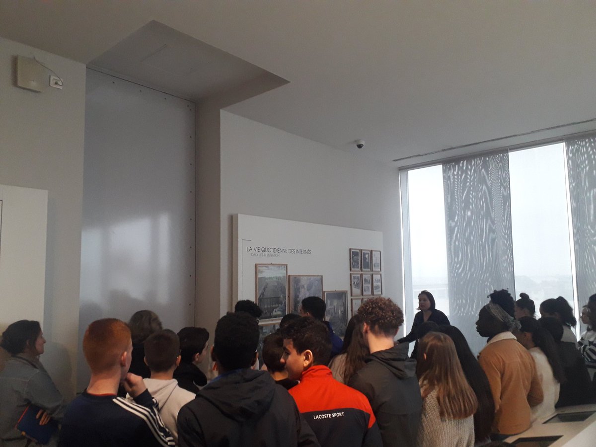 La journée commence avec la visite du Mémorial de Drancy. Les élèves découvrent une vidéo sur la rafle du billet vert de 1941 et l'arrivée des premiers internés juifs à Drancy.