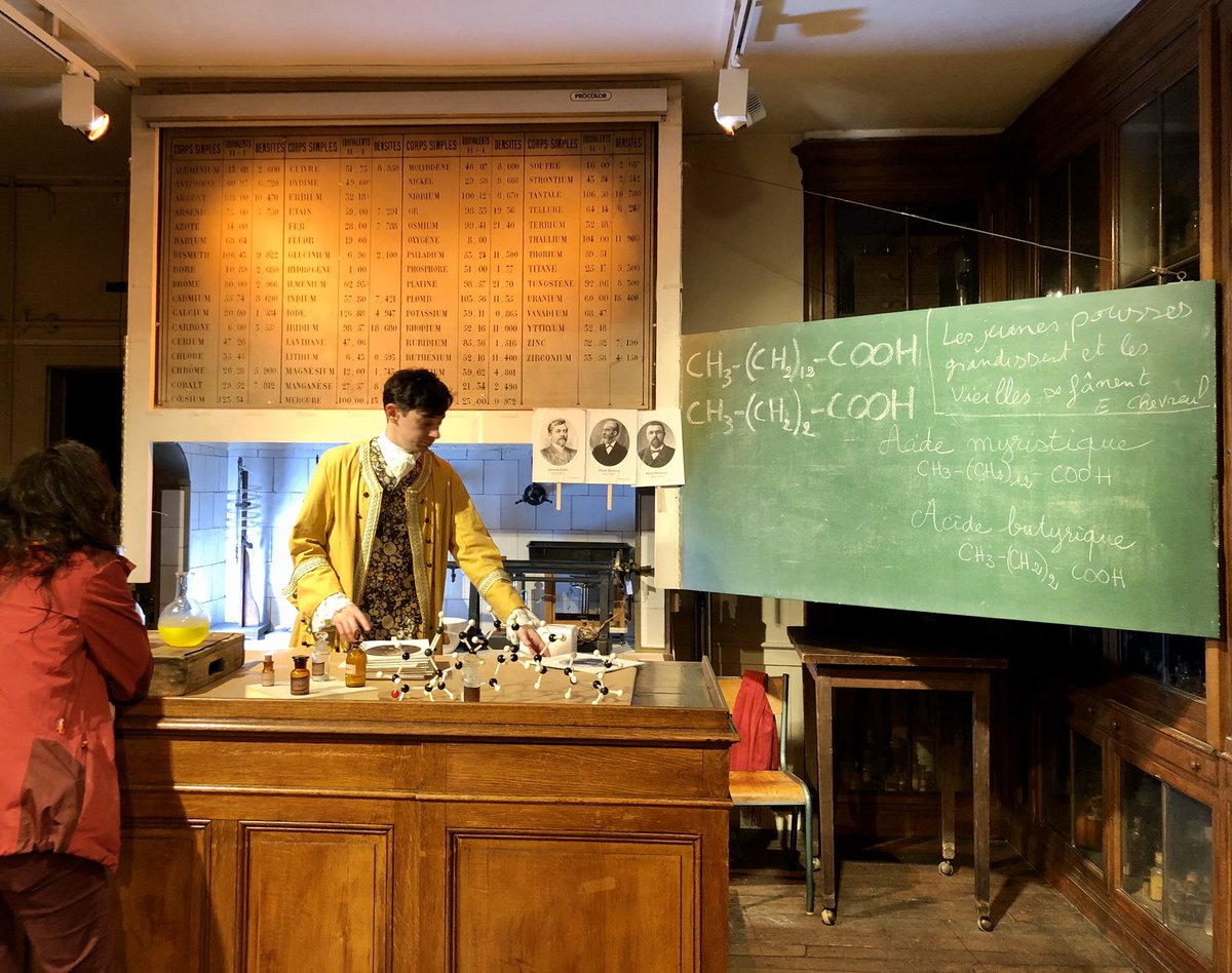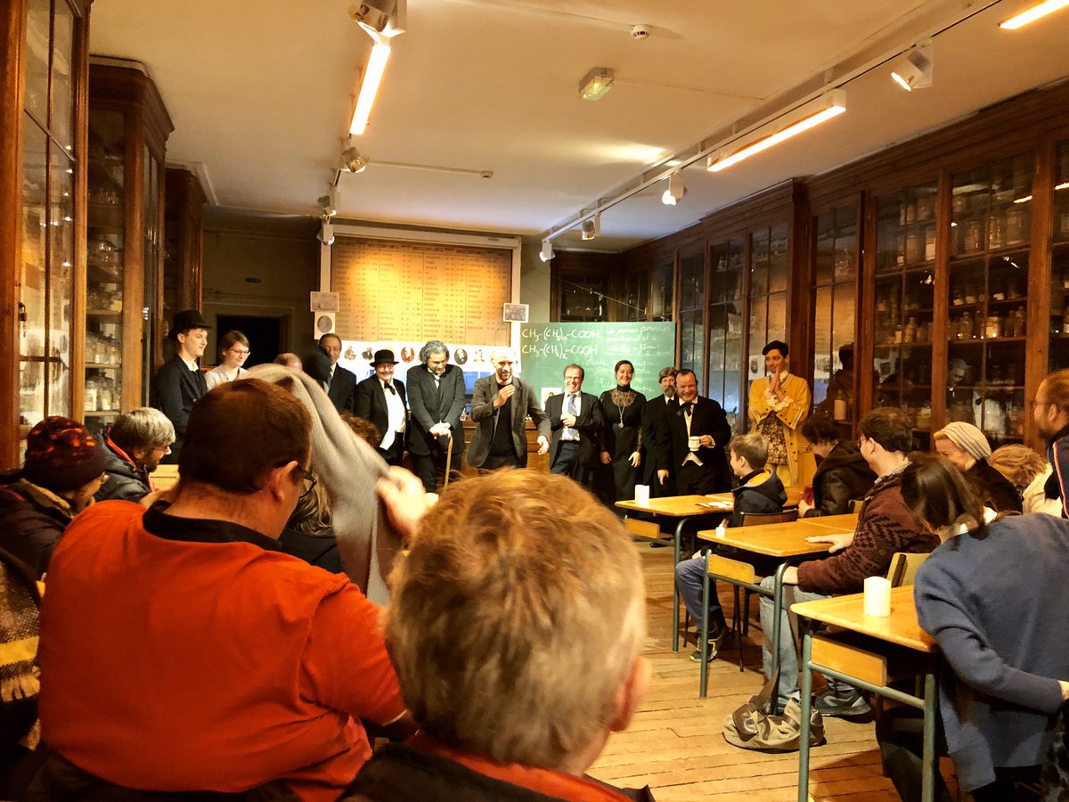 @parisfacecachee , la machine à remonter le temps de la recherche s’est mise en route dans la salle de cours du laboratoire de chimie de@Le_Museum