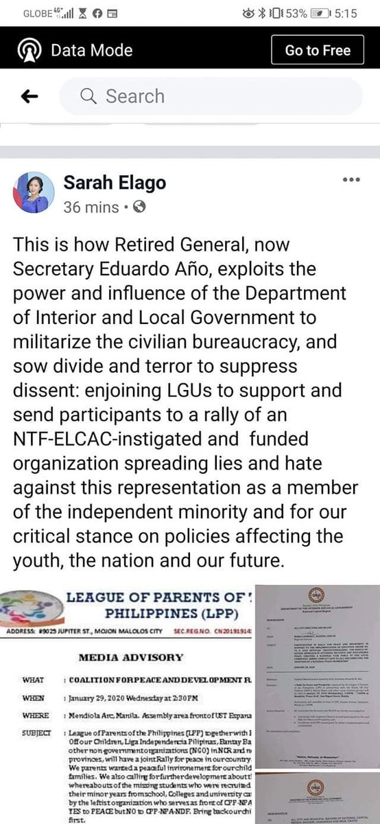 Ms. Sarah Elago..dont drag DILG Sec Ano here..kung nirequest namin na sumama mga LGU sa rally namin dahil mga magulang din sila at tax payer din kaming mga magulang..baka nakalimutan nyo po na galing sa amin ang mga taxes na sinisweldo sa inyo...kaya ka pi gumawa issuepic.twitter.com/RHxbc4AQ6M