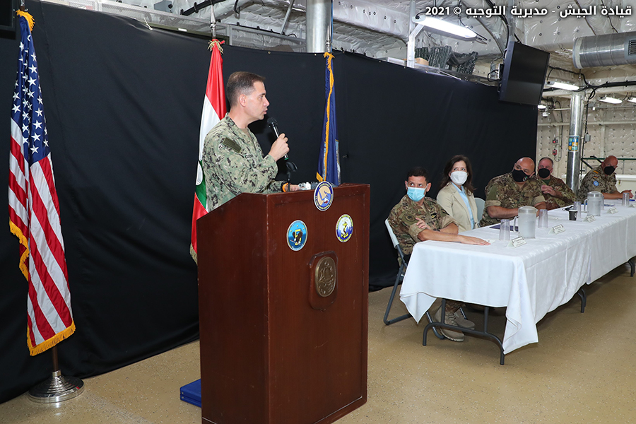 ألقى العماد عون كلمة شكر فيها السلطات الأميركية على دعمها للجيش اللبناني وتحديداً للقوات البحرية التي تضطلع بدور أساسي في ضبط التهريب غير الشرعي وتأمين حرية الملاحة في المياه الإقليمية اللبنانية بالتعاون والتنسيق مع اليونيفيل،pic.twitter.com/hB06aOzHNE