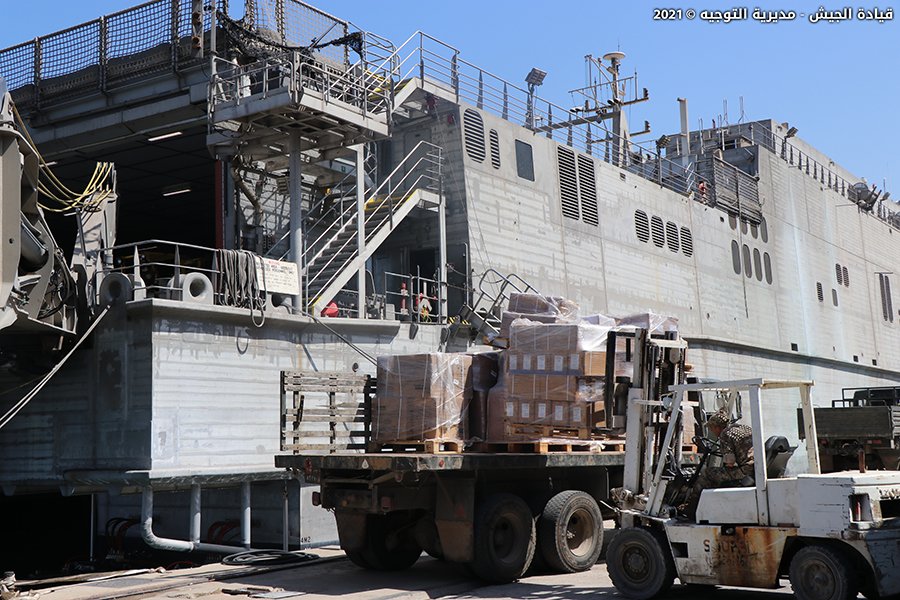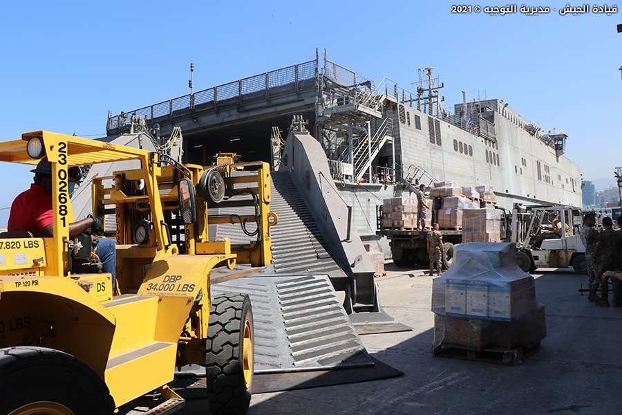 وفي الختام تسلم الجيش اللبناني ١٧٠ حاملة (PALLET) من المواد الطبية مقدمة هبة من السلطات الأميركية.