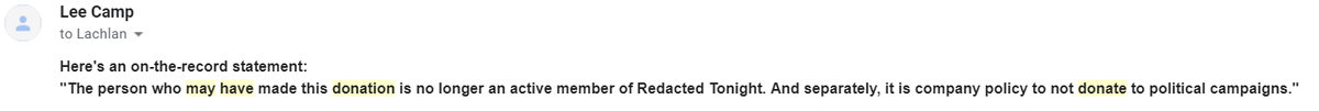 .@Lachlan knowingly lied in his @dailybeast report on how TONS of Russian-connected people (actually 3... yes 3) have donated to Tulsi Gabbard. Apparently someone donated who put "Redacted Tonight" as their employer & their name as "Goofy Grapes."