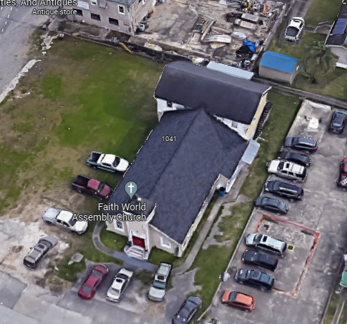 In this video, specifically at the 0:18 second mark, there is a church that is destroyed in Arabi, LA following a destructive tornado. The photo I attached is the same church in 3D via google maps.