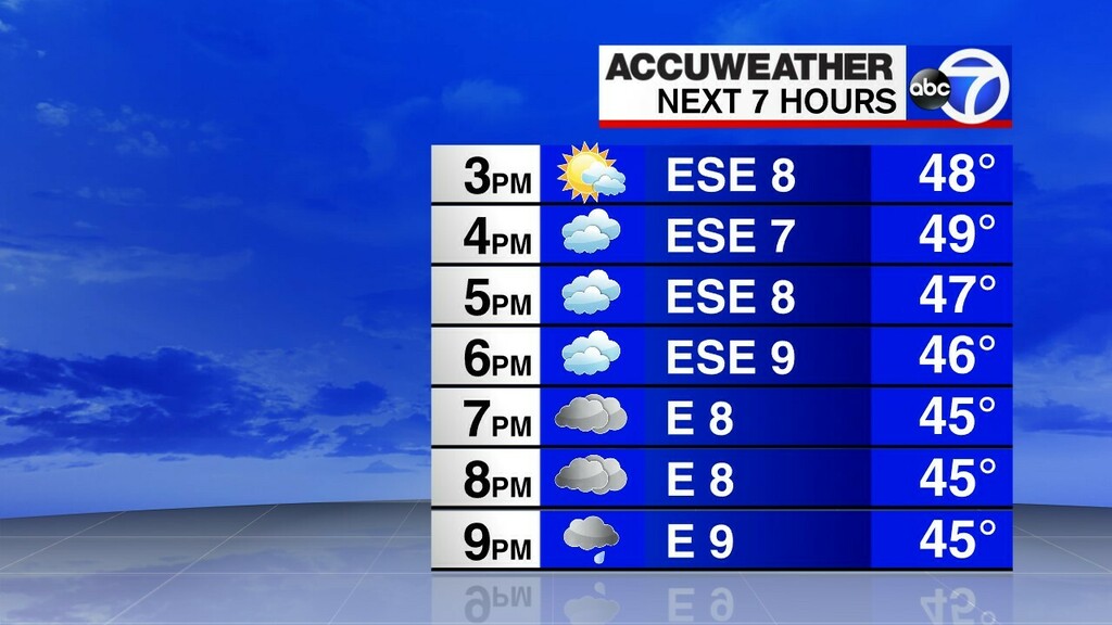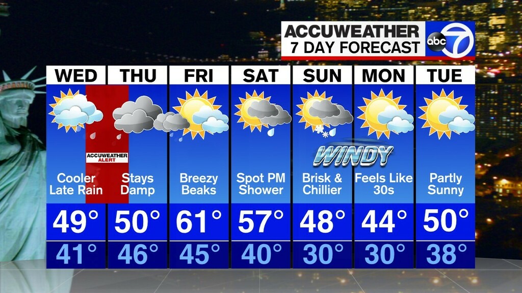 Partly sunny to mostly cloudy tomorrow, spot shower NW, last mild day for a while @ABC7NYpic.twitter.com/V3319z2OMC