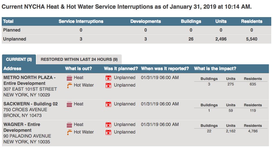 I lived in a NYCHA project for a little over 15 years of my life and my family for 23 years before getting out. Sadly, nothing has changed over the last 20+ years. Unconscionable that thousands of folks don’t have heat in this brutally cold weather.