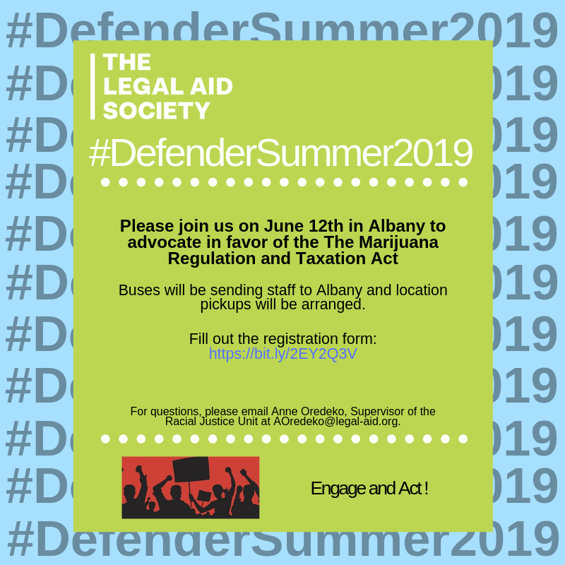Join us in Albany for #MarijuanaJustice & demand legislators pass the Marijuana Regulation & Taxation Act to protect our communities & provide restitution for those harmed by criminalization. Sign up here: https://bit.ly/2EY2Q3V #DefenderSummer2019pic.twitter.com/SIWlhwgsnf