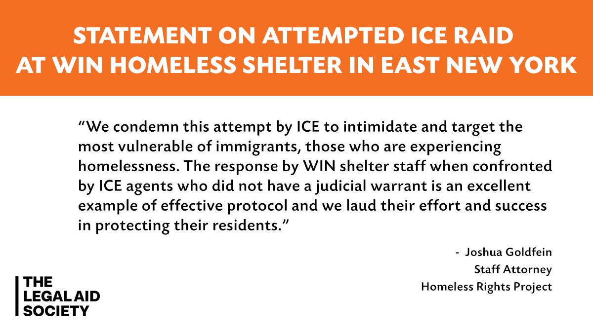 #BREAKING: ICE agents attempted to raid the Women In Need (WIN) homeless shelter is East NY. While this #ICEraid attempt failed & no one was arrested, we urge other City shelters & immigrant communities to remain on high alert. Read our full statement at https://bit.ly/31pWPG0 .pic.twitter.com/PJsgdxBQbx