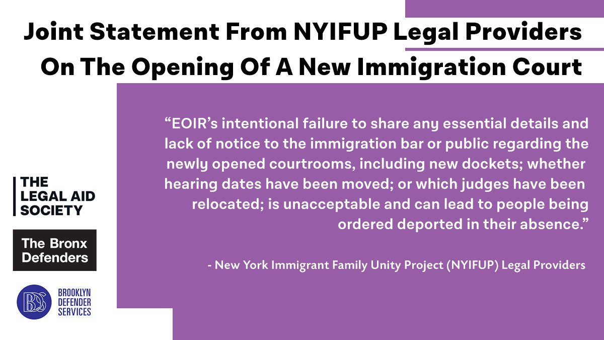 #NYIFUP providers condemn the lack of transparency, which impacts our detained clients & all immigrant NYers facing deportation proceedings in our courts. https://bit.ly/2lFMK8i pic.twitter.com/nQELAC8OFb