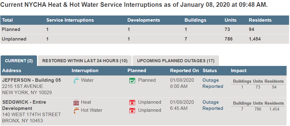 More heat and hot water outages impacting over 1,400 @nycha residents at the Sedgwick Houses in the Bronx.pic.twitter.com/rbe1oqamDE