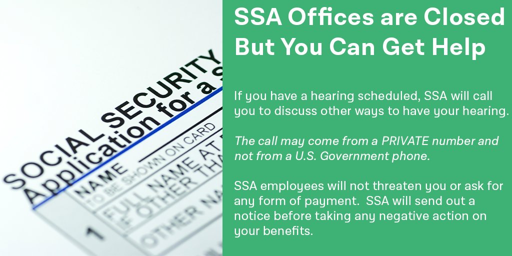 SSA Offices are Closed But You Can Get Help. https://www.ssa.gov/coronavirus/ pic.twitter.com/raTYsHItaS