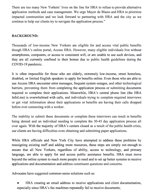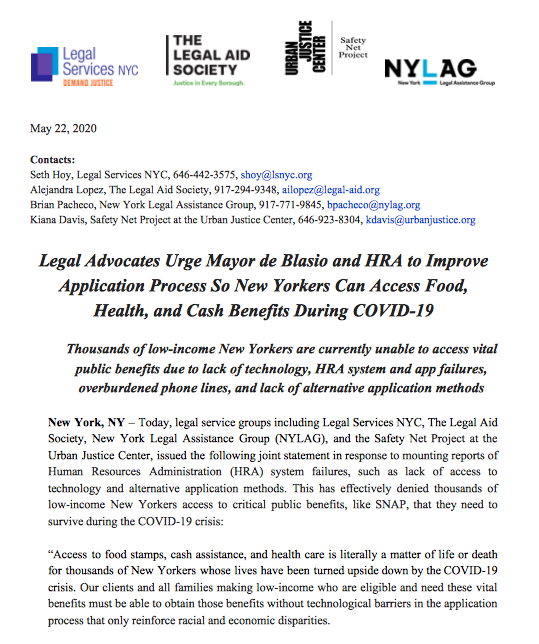 #BREAKING: @NYCHRA system failures have effectively denied thousands of low-income NYers access to critical public benefits, like SNAP, that they need to survive during #COVID19.