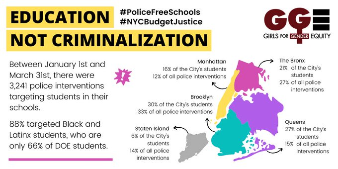 ATTN: @NYCCouncil the time is NOW to divest from policing & the criminalization of our young people! Give our youth & our communities the resources that actually keep us safe! Make #PoliceFreeSchools a reality so our students can thrive. That's #NYCBudgetJustice! #DefundTheNYPDpic.twitter.com/Qnf1aGL0Aw