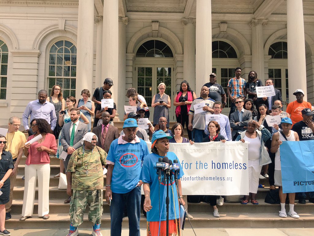 "Homeless people are human beings too. We need NYPD to stop sweeps at shelters." #NoMoreSweepspic.twitter.com/m1GoyPGBt9
