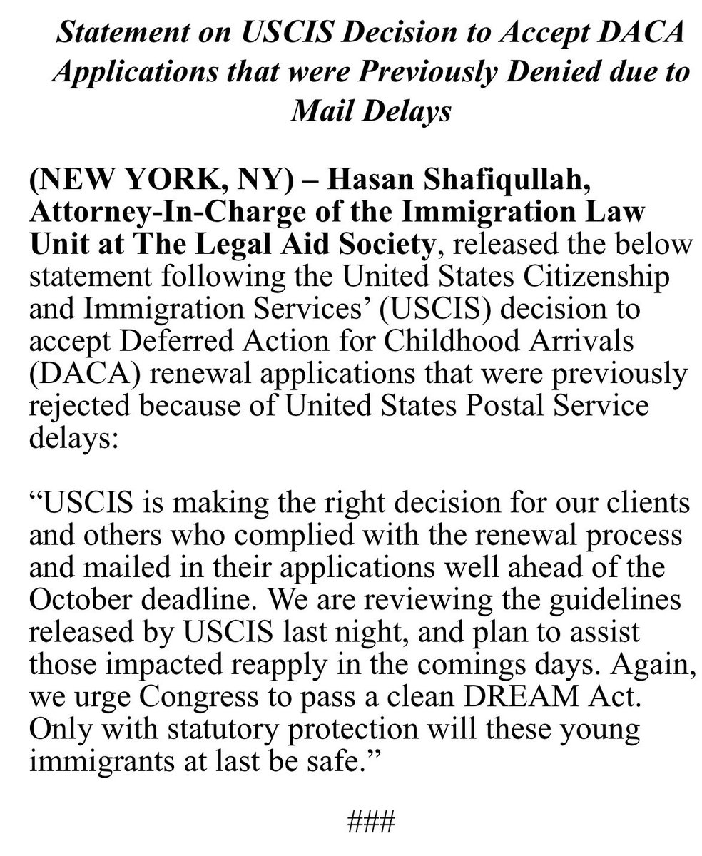 Great advocating with @thenyic and others to right this wrong. Impacted #Dreamers in need of assistance reapplying for #DACA please contact us at 844-955-3425 or dream@legal-aid.org.pic.twitter.com/MxWuohj5ID