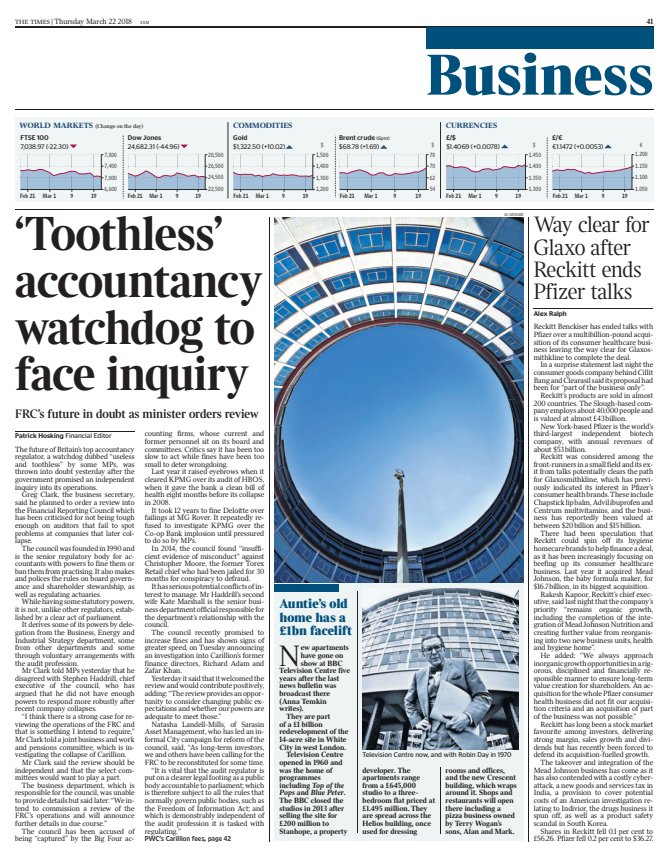 @TimesBusiness front page: ‘Toothless’ accountancy watchdog to face inquiry https://www.thetimes.co.uk/edition/business/toothless-accountancy-watchdog-faces-inquiry-pmkxk73dv …pic.twitter.com/rKjjOT6xKU