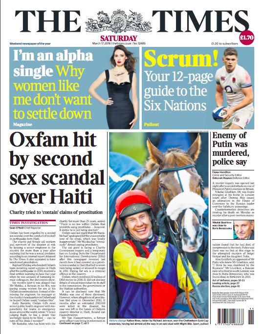 Tomorrow's Times front page: Oxfam hit by second sex scandal over Haiti https://www.thetimes.co.uk/edition/news/oxfam-hit-by-second-sex-scandal-over-haiti-raphael-mutiku-q85g5c2w3 …pic.twitter.com/f2n4x9KZYp