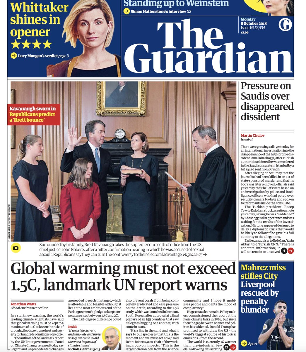To be fair, the 2am report launch (UK time) was horrible timing for the UK newspapers. Expect more coverage later/tomorrow. Plus it is leading the morning bulletins (for now) on the BBC... https://www.bbc.co.uk/news/science-environment-45775309 …