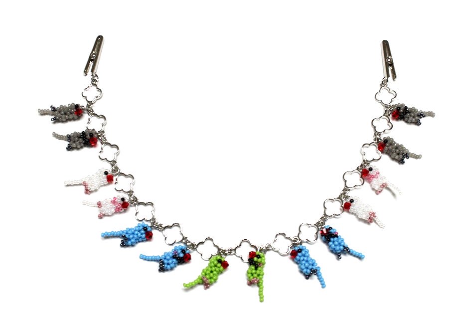 カーディガンやシャツのフロント部分にぶら下げたりすると、カラフルなワカケ気分が味わえますょ~