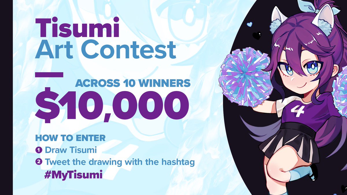Hello wonderful artists, I want to start up this $10k contest today for you all! The goal will be to draw my character Tisumi and post it with #MyTisumi. Her predominant feature is purple hair and you can draw her in any style you wish! http://bit.ly/MyTisumiContest pic.twitter.com/fq5oWqhLdn