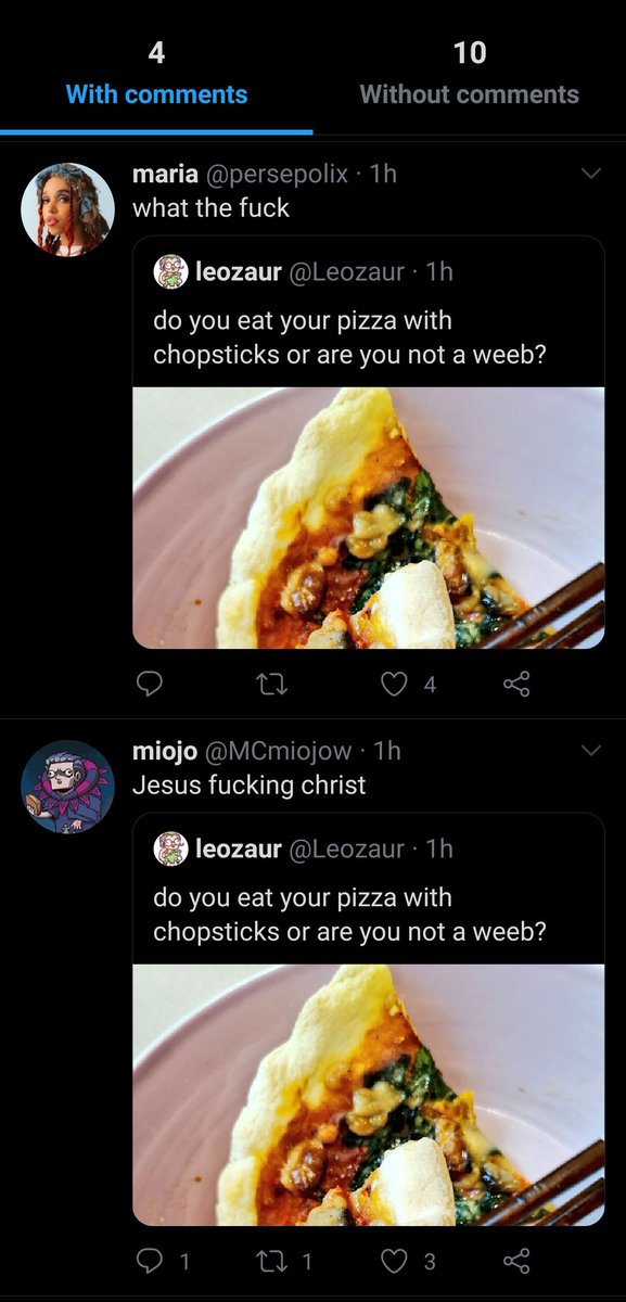 do you eat your pizza with chopsticks or are you not a weeb?pic.twitter.com/weapnCyCeZ