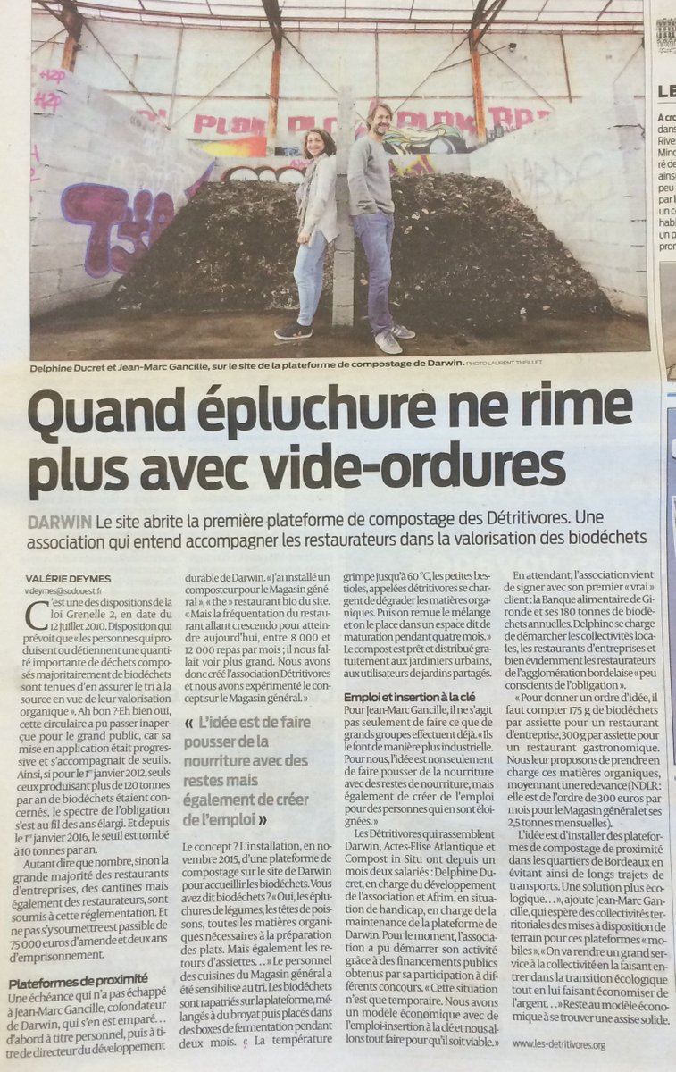 @LesDetritivores font la une de@sudouest#bordeaux Le compostage de proximité pour la restauration à l’honneurpic.twitter.com/PXgUto5t2M