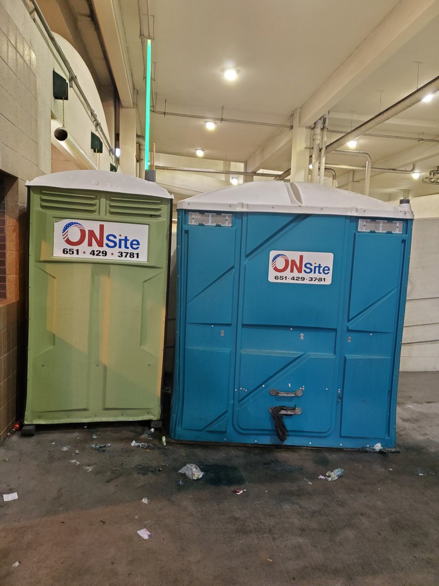 I have been in Minneapolis since yesterday. I can tell you these 2 porta potties were all that have been here to service the people in the SkyWalk line.They are 2 miles from the beginning of the line.They were turned to prevent access.